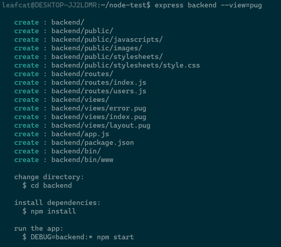 $ express backend --view=pug